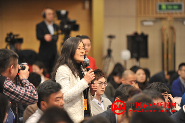 本网记者崔丽就农药兽药残留问题向农业部部长韩长赋提问。本网记者 戴军摄
